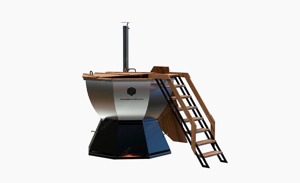 Банный чан – это место силы для каждого человека! В чане можно набраться сил после суетных трудовы дней. Место для приятных душевных разговоров с семьей и друзьями. Прятное парение в банном чане успакаевает психику, улучшает кровообращение, ускоряет обмен веществ. Улучшение общего состояния после парения доказано временем.                                                                                                                                                      Банный чан Князь 6-8 чел. с очагом -  это стандартная комплектаци чана. Чаша изготовлена из нержавеющего металла AISI-304 толщиной 2 мм. Внутренняя обшивка из лиственницы класса люкс.