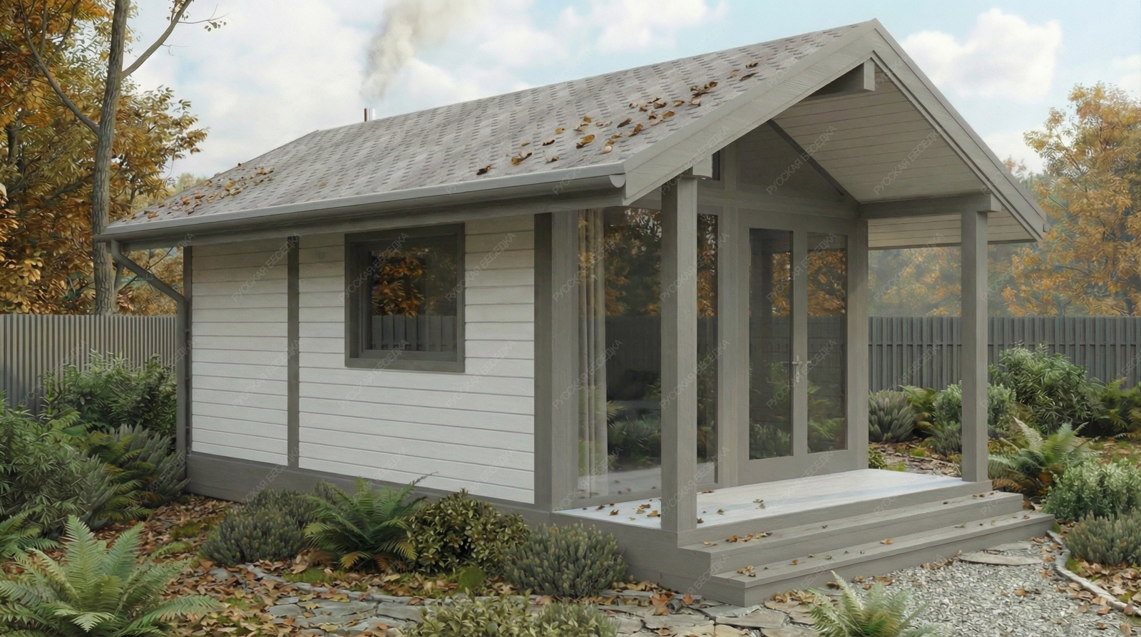 Огнебиозащита (бесцветная) или декоративный деревозащитный состав "Здоровый дом" (цвет на выбор) – нижняя обвязка, лаги, пол и цокольная доска.