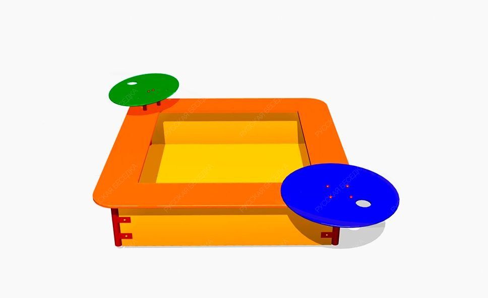 Детская песочница «Орбита» изготовлена из влагостойкой березовой фанеры соединенной между собой металлическими элементами. Помимо стандартных бортиков эта модель предлагает для игры в куличики еще и два круглых столика, расположенных по ее углам. Игры с песком совершенствуют мелкую моторику рук и координацию движений ребенка. Стиль исполнения этой детской песочницы хорошо сочетается с современным дизайном уличных игровых площадок.