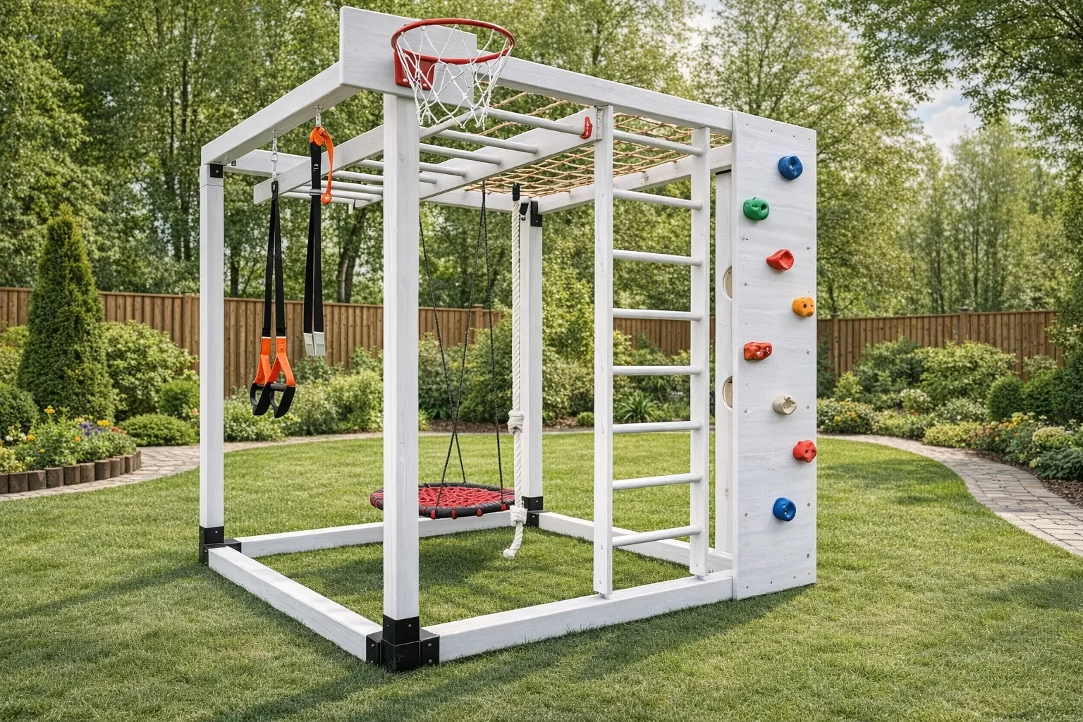 Деревянные детские спортивные комплексы — это пространство, где рождается сила, ловкость и уверенность в себе. Натуральное дерево, экологичное и тактильно тёплое, создаёт особую атмосферу уюта и безопасности, принципиально отличаясь от холодного металла. Это не просто снаряды, а настоящий островок приключений, который растёт и меняется вместе с ребёнком. Каждый комплекс представляет собой модульную систему, где базовую конструкцию дополняют разнообразные элементы. Гладкая горка для весёлого скольжения, мини-скалодром для развития координации, классические качели, рисующие в воздухе плавные дуги, и надёжный турник для формирования правильной осанки. Верёвочные лестницы и канаты учат балансу и работе с собственным весом, а баскетбольное кольцо оттачивает точность броска. Секция с лестницей может быть расположена под любым углом, создавая уникальную траекторию для лазания. Такая вариативность позволяет создавать сооружение под конкретные задачи и доступное пространство. Все комплектующие можно комбинировать и заменять, адаптируя игровую зону под взросление ребёнка и появление новых интересов. Конструкции отличаются безупречным качеством обработки: отшлифованная древесина, исключающая занозы, прочные соединения и устойчивость к нагрузкам. Это капитальное вложение в физическое развитие, где каждая деталь продумана для активных игр и безопасного штурма вершин.
