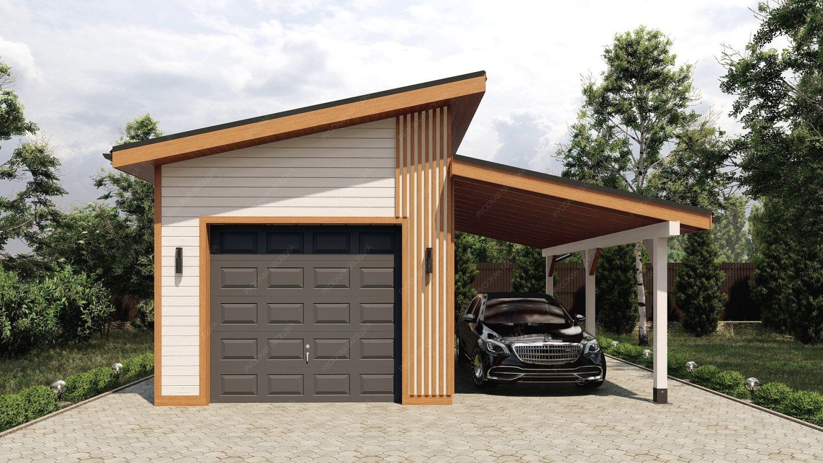 Гараж односкатный с навесом Филимоново