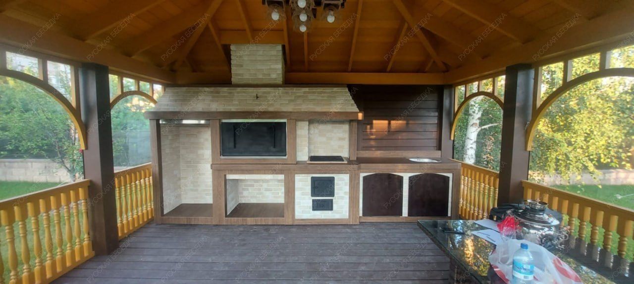 Беседка выполненная из лучших пород древесины, прослужит долгие годы и не потребует особого ухода и обслуживания. Специальные лакокрасочные материалы которые мы используем, предотвратят старение, гниение и заражение грибком конструкции кухни. Используемая огнебиозащита образует полупрозрачное полуматовое покрытие, стойкое к влаге, УФ-излучению, перепадам температуры и другим атмосферным воздействиям.