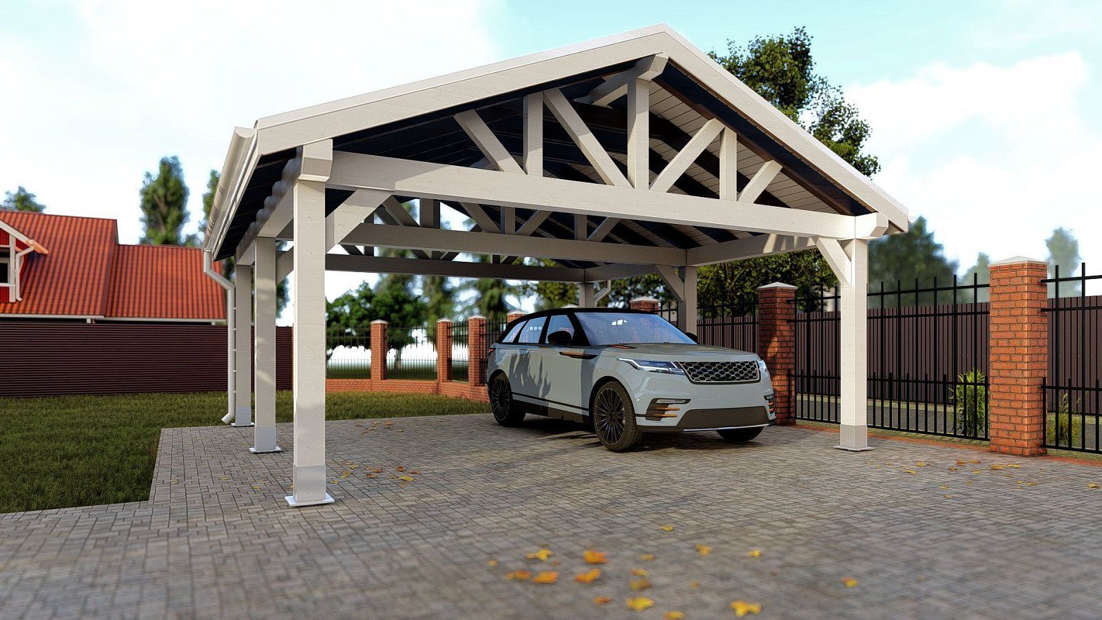 Навес из дерева послужит отличным парковочным местом для одного или нескольких автомобилей.