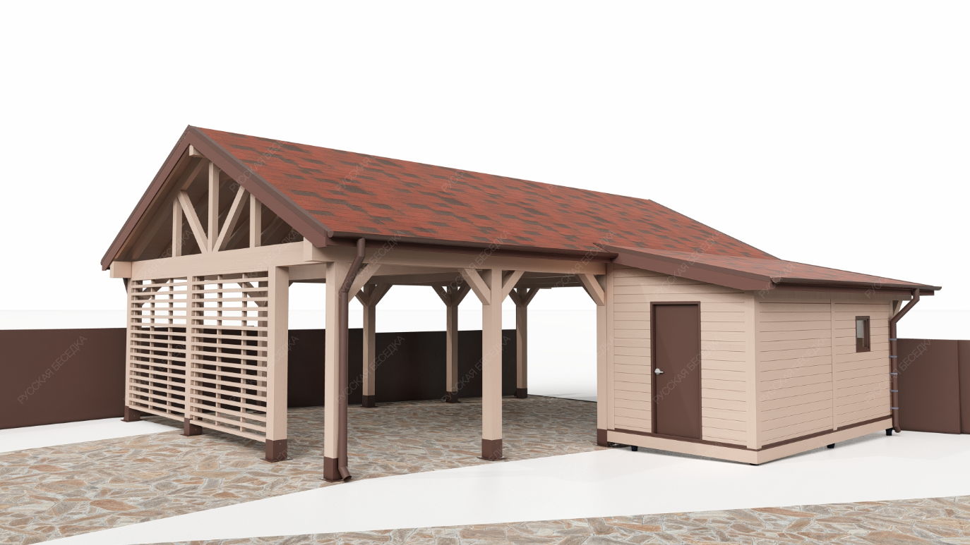 Навес из дерева послужит отличным парковочным местом для одного или нескольких автомобилей.