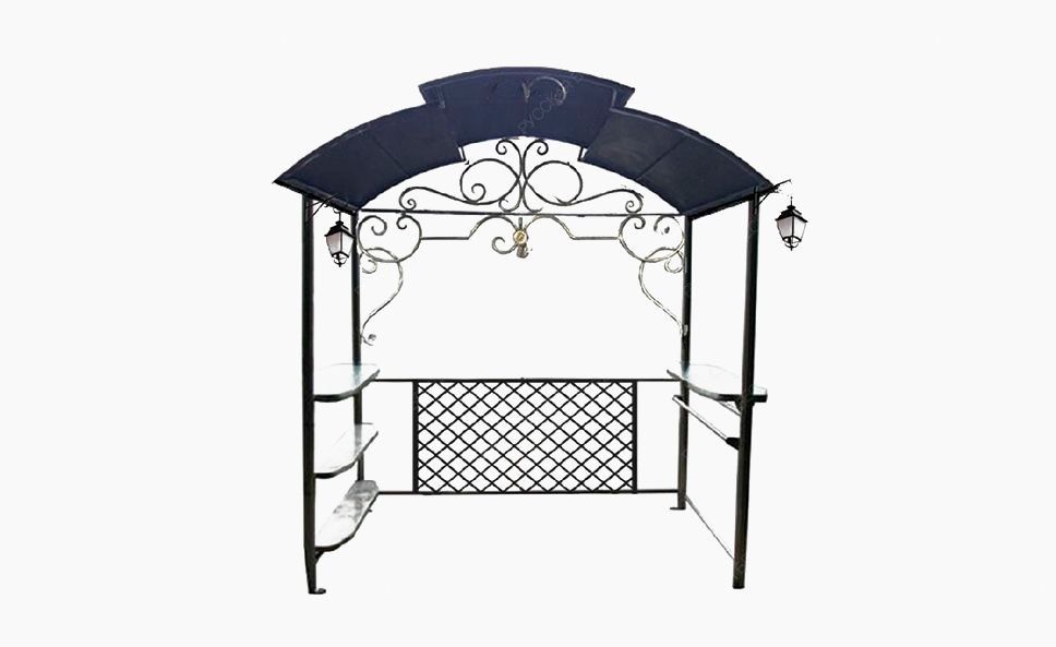 Модерн - навес для мангала изготовленный по аналогу популярных моделей мангального комплекса, но без вспомогательных атрибутов для готовки. Под таким навесом можно расположить и печку под казан, и жаровню для шашлыков, и садовые табуретки или кресла, а также дровницу, пушку для шампуров и передвижной столик-тележку. Вы можете делать перестановку всех элементов по своему желанию. Стационарные полки на боковых сторонах прекрасно подойдут для размещения нужной посуды и инвентаря, а верхние можно использовать и как разделочные столики.