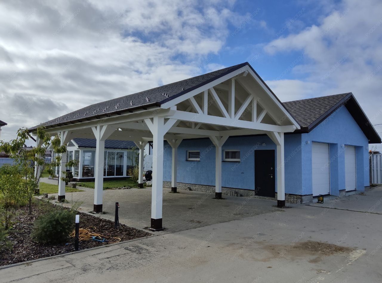 Навес из дерева послужит отличным парковочным местом для одного или нескольких автомобилей.