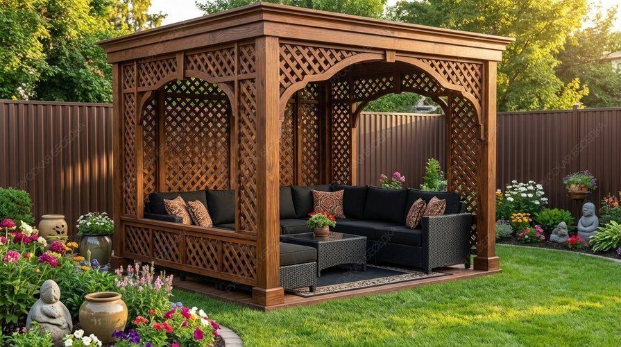 Перголы из дерева сочетают в себе природную красоту и современные дизайнерские решения, создают идеальное место для отдыха и различных видов досуга на открытом воздухе. Перголы могут стоять отдельно или быть частью композиции с другими элементами сада. Деревянная пергола придаст вашему садовому участку теплую и уютную атмосферу.Также пергола может служить опорой для плетущихся растений - только представьте, как приятно находиться в окружении цветущего клематиса или пышных роз! Дополнительные элементы, такие как встроенное освещение, декоративные решетки, качели или скамейки, могут усилить визуальный эффект и создать еще более комфортное пространство. А если в конструкцию перголы добавить подиум, то он может служить местом для расслабления или стать сценой для семейных мероприятий. Пергола с навесом обеспечивает надежную защиту от солнечных лучей, создавая тенистое пространство для отдыха. Она станет идеальным местом для встреч с друзьями, чтения книг или приема пищи на свежем воздухе. Любая пергола не только украшает ваш сад, но и предоставляет функциональное пространство для приятного времяпровождения на природе с семьей и друзьями.