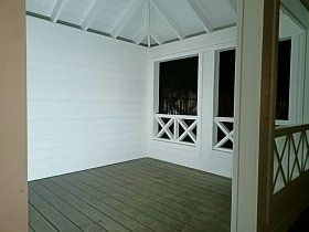 Tikkurila Vinha кроющий антисептик с большой цветовой палитрой, который формирует на поверхности материала защитное покрытие, которое замедляет процессы разрушения древесины. Состав краски включает в себя водоотталкивающие компоненты и позволяет не только сохранить материал и продлить срок его службы, но и существенно увеличить эстетическую привлекательность конструкции