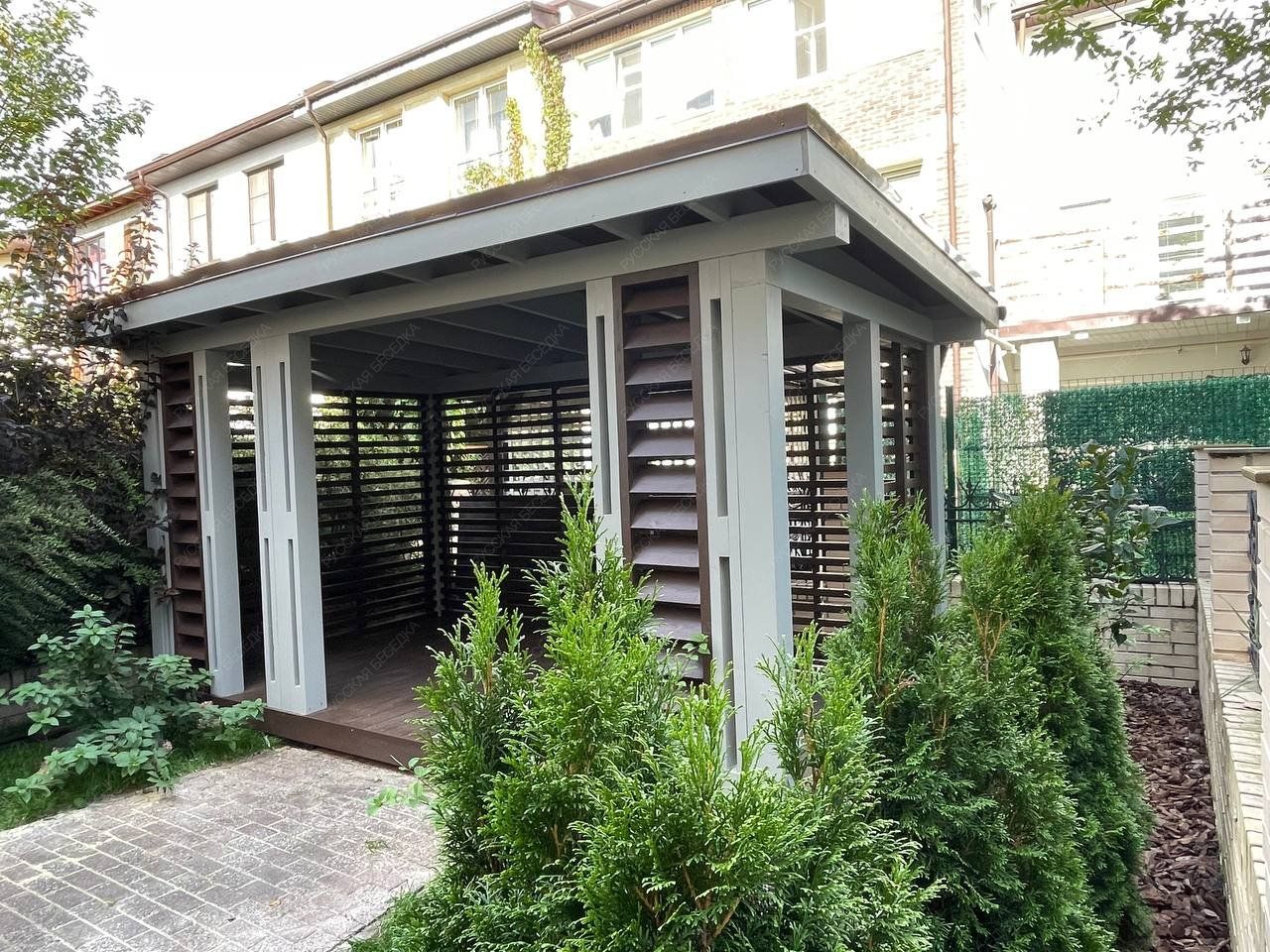 Беседка выполненная из лучших пород древесины, прослужит долгие годы и не потребует особого ухода и обслуживания. Специальные лакокрасочные материалы которые мы используем, предотвратят старение, гниение и заражение грибком конструкции кухни. Используемая огнебиозащита образует полупрозрачное полуматовое покрытие, стойкое к влаге, УФ-излучению, перепадам температуры и другим атмосферным воздействиям.