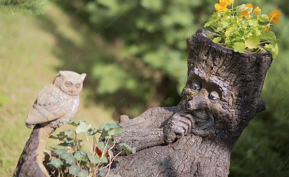 Дизайнерская фигурка-цветник «Пень с совой» украсит поляну или дополнит цветник. Садовая фигура добавит оригинальности и изящности, станет изюминкой вашего ландшафта. Фигурка из прочного, лёгкого стеклопластика, противоударная и влагостойкая, не боится изменения температуры, сохранит на долгие годы первозданный вид. Красивый цветник у входа в дом или у ворот на участке выглядит, как приглашение желанному гостю войти. Именно цветы создают атмосферу беззаботного отдыха, дарят отличное настроение. В тот момент, когда дачный участок перестал быть главным источником пропитания, а превратился в место проведения праздников, выходных и отдыха, это их свойство стало особенно актуальным. И ничто не подчеркнёт неповторимую красоту каждого цветка, как живописный цветник. В отличие от клумб, цветники можно расположить в любом месте: поставить на каменистую дорожку, на заросшую дикой травой лужайку или даже на веранду - для их устройства не требуется перекопанная почва, да и в принципе нужно совсем немного земли. И, кстати, растения в цветниках меньше болеют и дольше сохраняют привлекательный внешний вид. Цветник с кашпо можно превратить в настоящее неувядающее весь сезон главное украшение сада. Горшки с цветами, которые ставятся в них, можно периодически менять, заменяя виды растений по мере их цветения. ветник на даче, выполненный как скульптура из полиэфирной смолы, - одно из лучших решений. Это экологически чистый материал, который длительное время сохраняет форму, устойчив к механическим повреждениям, хорошо себя чувствует в любых климатических условиях и при любой погоде.