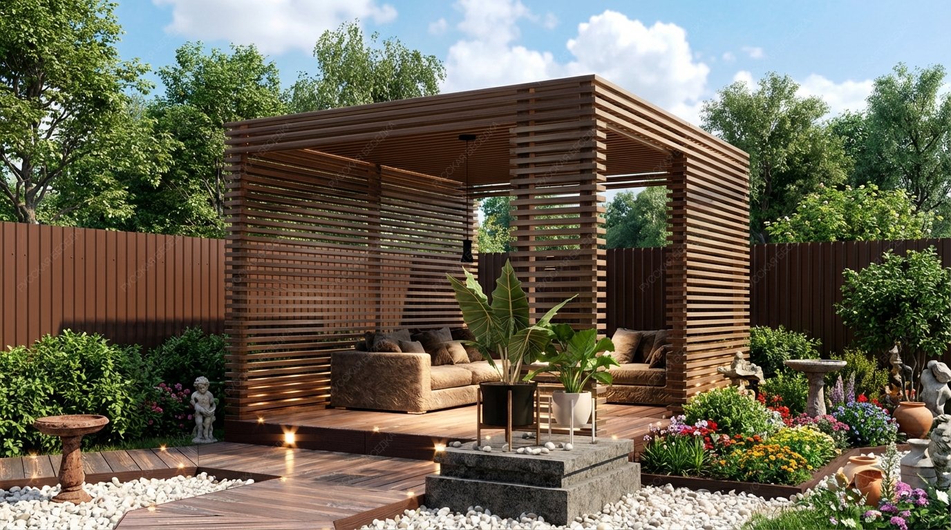Современный ландшафтный дизайн и беседки - центральные элементы загородного участка. Беседка должна размещаться в таком месте участка, где вам будет комфортно находиться, а также она должна отвечать своему назначению и притягивать взгляды. Беседка является уникальным строением, с ее помощью можно отдохнуть за чашечкой кофе, укрыться от знойного солнца или провести шумный праздник в кругу семьи и друзей.
