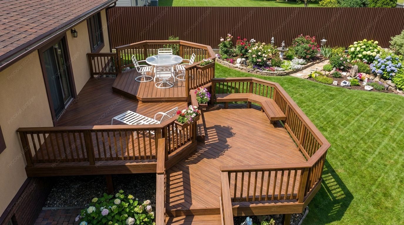 Террасы — это идеальное решение для создания уютного пространства на свежем воздухе, где вы сможете наслаждаться природой и проводить время с близкими. Эти деревянные конструкции не только расширяют жилую площадь вашего дома, но и становятся прекрасным местом для отдыха и развлечений. Террасы обеспечивают комфортное пространство для обустройства зон для приема пищи, отдыха или просто наслаждения солнечными днями. Они могут быть оформлены в различных стилях и размерах, что позволяет легко интегрировать их в общий ландшафт вашего участка. Благодаря использованию качественного дерева, наши террасы отличаются прочностью и долговечностью. Мы применяем только отборные породы древесины, которые проходят камерную сушку, что гарантирует защиту от гниения и вредителей. Специальные пропитки обеспечивают защиту от атмосферных воздействий, а огнебиозащита делает террасы устойчивыми к влаге и перепадам температур. Наши специалисты помогут вам выбрать идеальный дизайн и размер террасы, чтобы создать комфортное и стильное пространство для отдыха. Превратите свой участок в уютное место, где приятно проводить время на свежем воздухе с нашими надежными деревянными террасами!