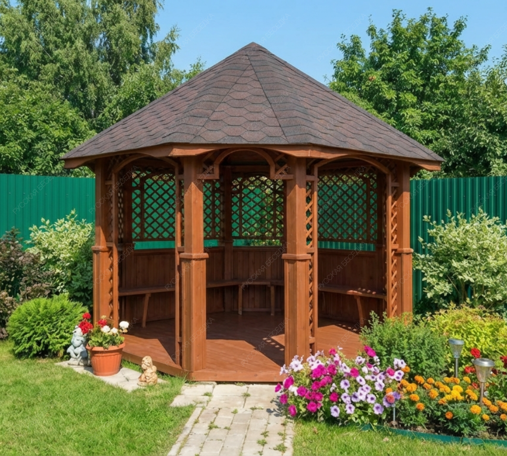 Современный ландшафтный дизайн и беседки - центральные элементы загородного участка. Беседка должна размещаться в таком месте участка, где вам будет комфортно находиться, а также она должна отвечать своему назначению и притягивать взгляды. Беседка является уникальным строением, с ее помощью можно отдохнуть за чашечкой кофе, укрыться от знойного солнца или провести шумный праздник в кругу семьи и друзей.